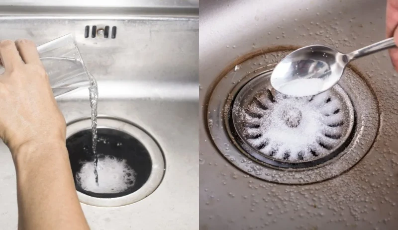 22. Unclog drains with baking soda and vinegar